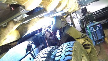 Solda chassis de caminhão